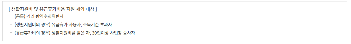 생활지원비의 경우 유급휴가 사용자이거나, 소득기준 초과했다면 제외 됩니다.