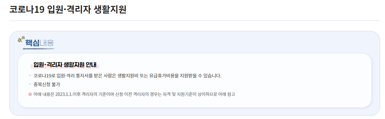 코로나 지원금은 입원, 격리 통지서를 받은 사람이 지급받는 지원금 입니다.